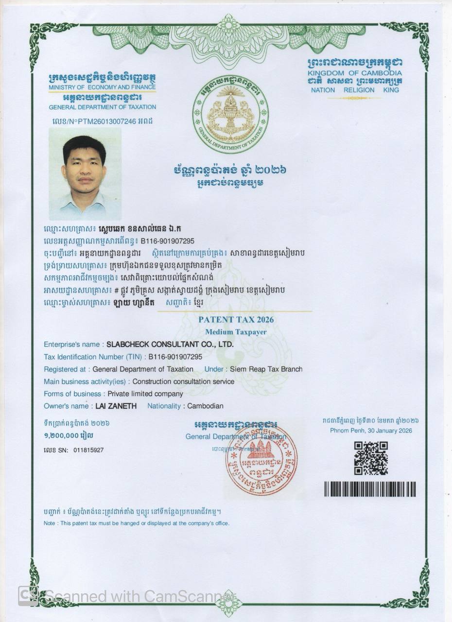 My name is Lai Zaneth, a civil engineering graduate from National University of Singapore (NUS). My first experience with construction industry was with Surbana Jurong, a Singaporean goverment-owned consultancy company focusing on infrastructure and urban development. The skill set and discipline I had learned from my time in Singapore has motivated to embark on a new journey myself in my home country, Cambodia. It was rather daunting at first for implementing new mindset and new role into construction industry in Cambodia. Bit by bit, more Project owners and clients start to believe in the need of having construction consultant at their service. In 2019 , Slabcheck Consultant Co,.Ltd has been launched on the forefront of construction industry, now serving more than 70 projects ranging from residential, corporate to other types of projects.. Thank you!”